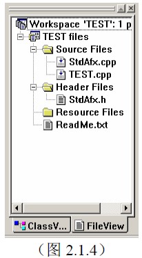 单击Finish后,会弹出一个关于新工程信息的消息框,再次点击OK后,示例工程出现。找到Workspace框(事实上这个框上没有这个名称,该框在整个集成开发环境左方),单击File View,将所有树状目录点开,如图2.1.4。
