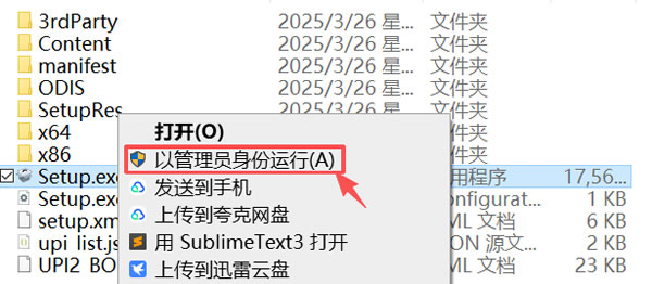 4) 右键 Setup.exe ,点击 “以管理员身份运行”: