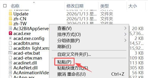 10) 回到 CAD 2026 文件夹内,复制 acad.exe: