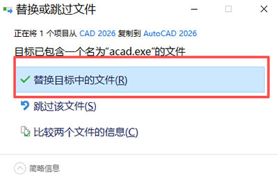 13) 弹出下图所示界面,点击 “替换目标中的文件”: