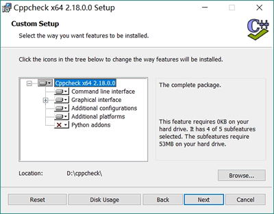 下载 cppcheck-2.18.0-x64-Setup.msi,双击启动安装:
