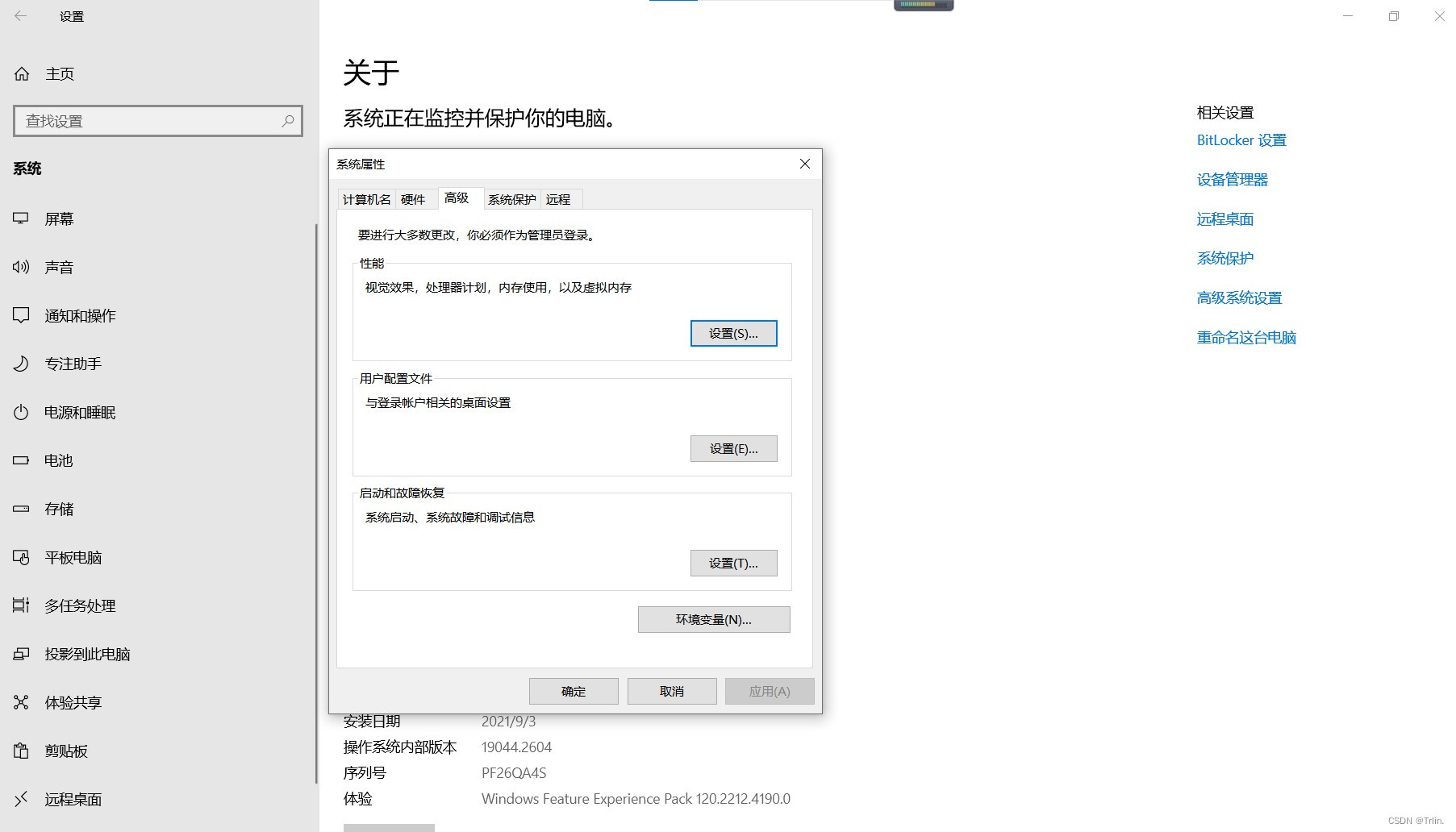 2.右键打开”此电脑“属性,先点击”高级系统设置”,再点击“环境变量”。