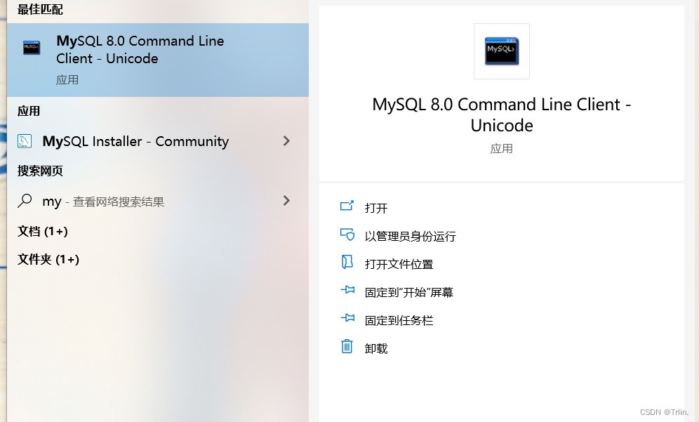 1.在Windows开始搜索输入Mysql,并选择第一个打开。