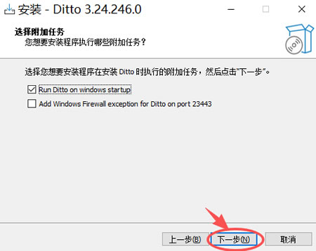 1) 下载安装包,双击 DittoSetup_64bit_3_24_246_0.exe 启动安装: