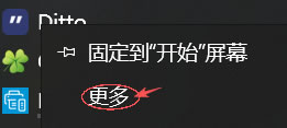 6) 点击电脑的开始菜单栏,在最近添加里,找到右键 Ditto,右键 “更多”: