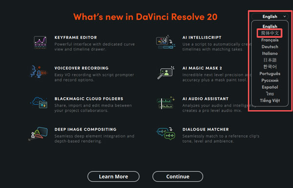 22) 点击右上角,选择 “简体中文”: