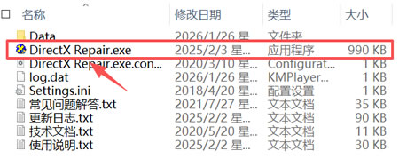 2) 进入解压后文件夹,双击 DirectX Repair.exe 启动程序: