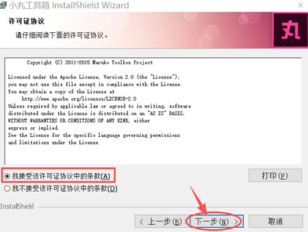 5) 勾选 “我接受该许可证协议中的条款”,点击 “下一步”: