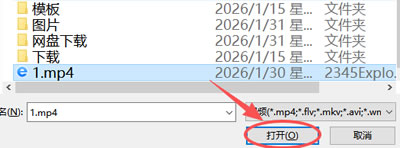 2) 选中视频,点击 “打开”:
