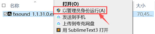 1) 下载 FxSound 安装包,右键 fxsound_1.1.33.0.exe,点击 “以管理员身份运行”: