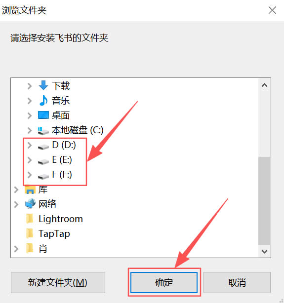 1)下载文件夹内名为“飞书.exe”的安装包。2)默认下载到 C 盘,强烈建议下载到其它盘(非系统盘),点击“自定义选项 ”修改安装路径: