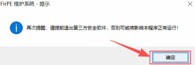 1)下载文件夹内名为“FirPE.exe”的安装包。2)点击“确定”: