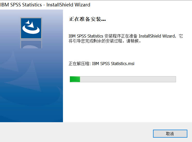 1)双击打开名为“SPSS.exe”的文件。2)正在进行安装准备: