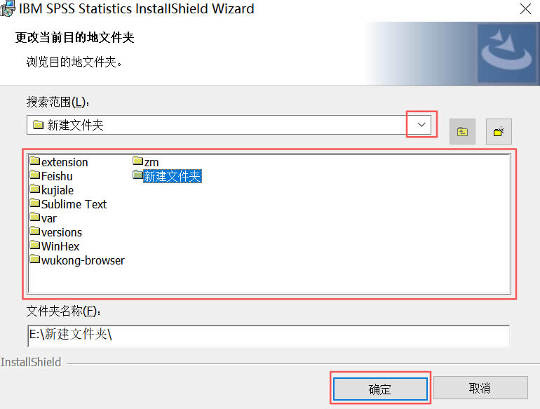 6)先点击下拉展开按钮选择任意一个非系统盘,选择好在选择安装到那个文件夹,最后点击“确定”: