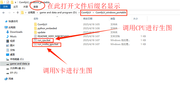 打开之后点击文件夹进入,可以点击 run_cpu.bat 调用 CPU 进行生图,也可以点击 run_nivdia_gpu.bat 调用 N 卡进行生图: