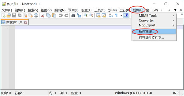 1) 在菜单栏中依次选择“插件 -> 插件管理”: