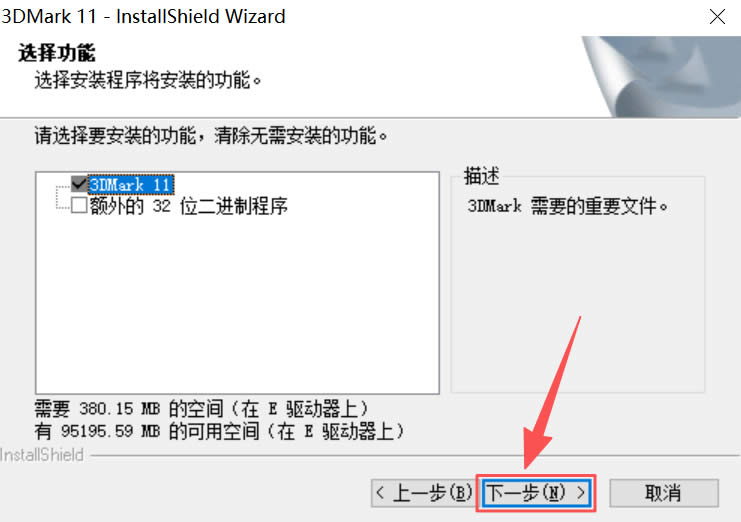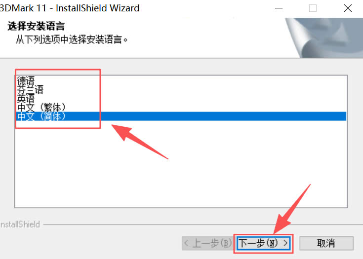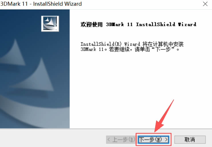 1)双击启动“3DMark.exe”文件:2)默认语言中文,点击“下一步”:
