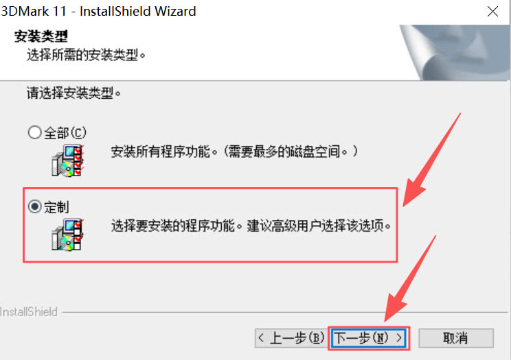 6)建议选择“定制”,然后点击“下一步”: