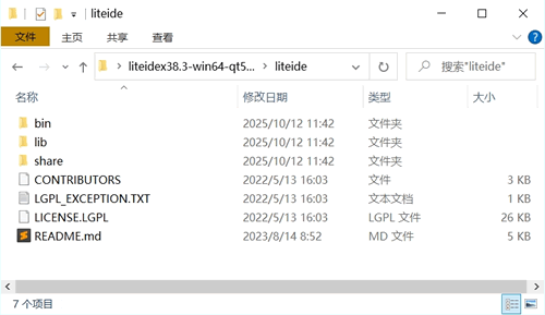 笔者使用的是 Windows x64 系统,因此这里以 Windows 为例,展示 LiteIDE 的安装过程:1) 下载 liteidex38.3-win64-qt5.15.2.zip 压缩包(网盘里就有),解压后的文件夹如下图所示: