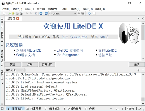 3) 双击 liteide.exe 即可启动 LiteIDE,主界面如下图所示: