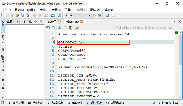 在打开的文件中找到“GOROOT=xxx”,并将其修改为环境变量中 GOROOT 对应的值,如下所示。(注意:修改完成后记得保存)