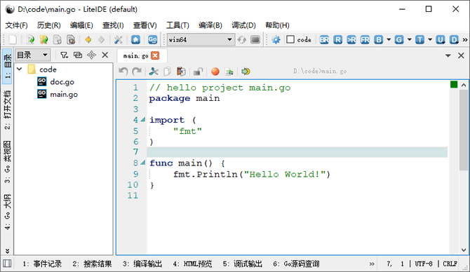 到这里 LiteIDE 已经基本上配置完成了,下面我们就来创建一个项目来测试一下。