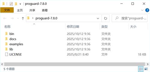 2) 下载 ProGuard,笔者使用的是 Windows 系统,从网盘中下载获得 proguard-7.8.0.zip 压缩包,将其解压,如下图所示: