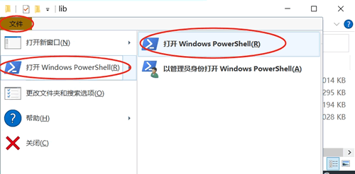 3) 进入 lib 文件夹,然后按照下图打开 Windows PowerShell: