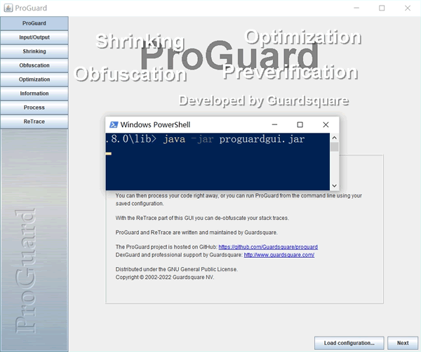 4) 手动输入 java -jar proguardgui.jar 命令,启动 ProGuard: