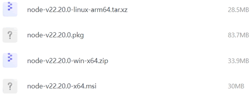 网盘里包含了多个版本的 Node.js 安装包,如下图所示: