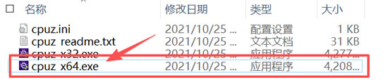 2) 进入解压后的压缩包,双击 cpuz_x64.exe 启动软件: