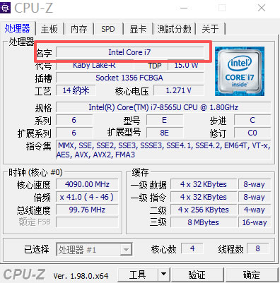 - 名字:Intel Core i7 ,跟右击我的电脑属性里查看到的处理器信息是一样的;