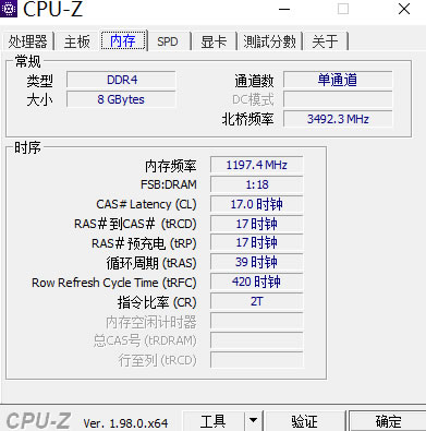 - 内存频率:内存芯片当前的工作频率为 1197.4MHz。