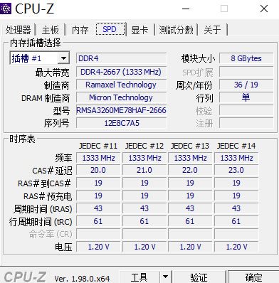 - 通道数:内存的工作模式为单通道模式;