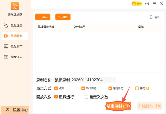 ② 用鼠标依次点击需要点击的位置,点击完成后,点击 “结束录制”: