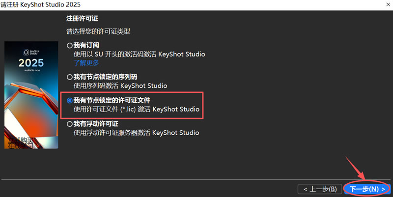 24) 点击 “我有节点锁定的许可证文件”,点击下一步: