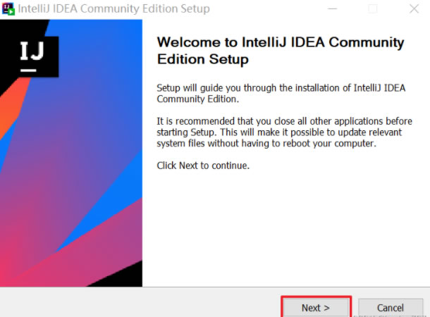 下载 IDEA 的安装包,双击“IDEA.exe”启动,点击Next: