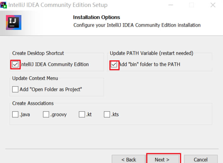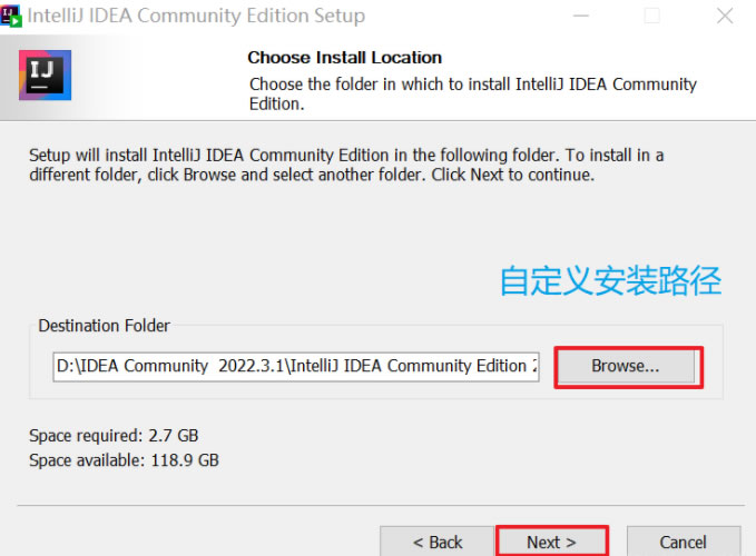 这里我选择自定义安装在D盘的IDEA Community 2022.3.1文件夹下,当然也可以选择不更改直接点击Next