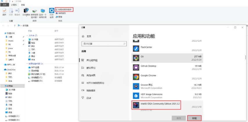 这里以 windows10 系统为例,此电脑点击找到卸载或更改程序,找到IDEA的安装包卸载即可