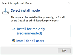 Windows 平台下载网盘中的 thonny-4.1.7.exe 安装程序,双击它启动安装,过程如下: