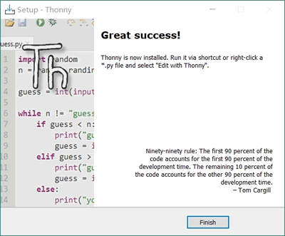 9) 弹出下图的界面,表示安装完成,电脑桌面上增添了“Thonny”的图标。
