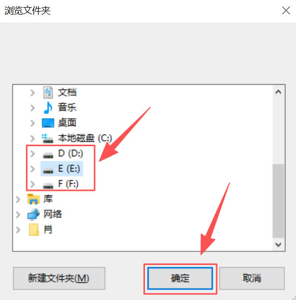 3)选择任意一个非系统盘,选择好下载到那个文件夹,点击“确定”: