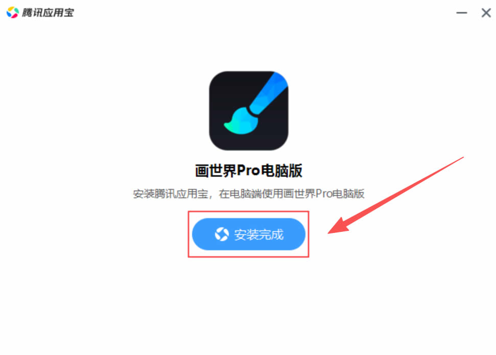 6)腾讯应用宝安装完成,点击“安装完成”,打开腾讯应用宝: