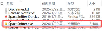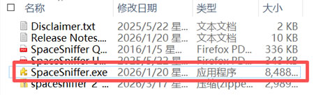 2) 解压后,双击 SpaceSniffer.exe 启动程序: