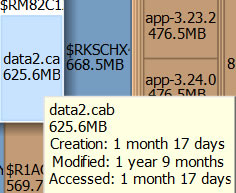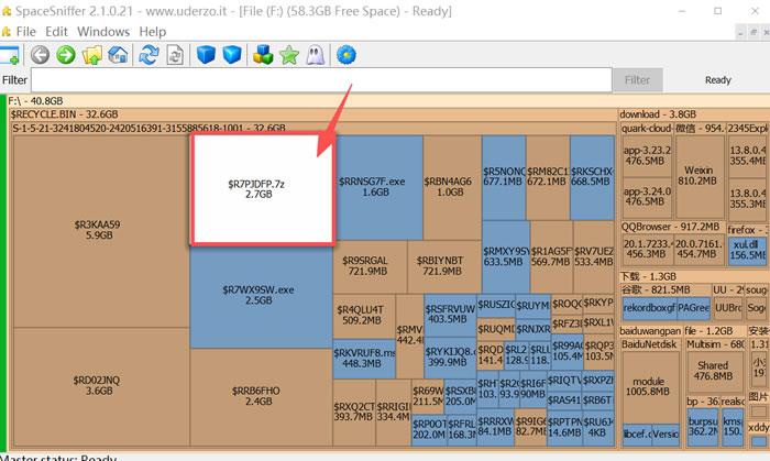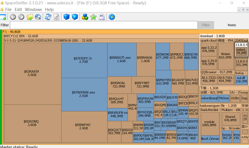 注意:每个小方格代表一个文件或者文件夹,方块的大小表示文件夹占用的空间大小。