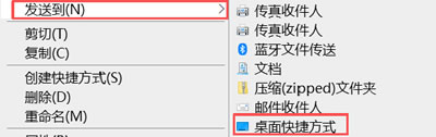 2) 点击 “发送到”,然后点击 “桌面快捷方式”:
