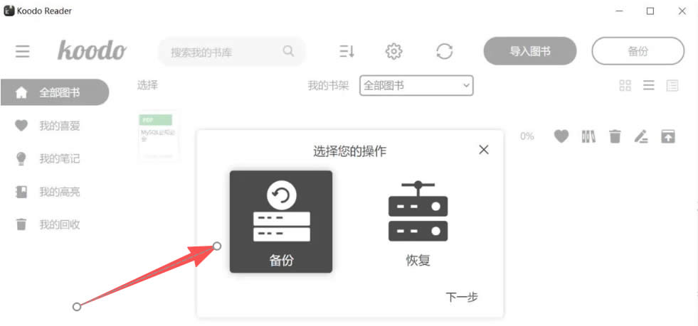 Koodo Reader 会生成一个以当前日期命名的压缩包。之后通过恢复功能,导入刚刚的压缩包即可。