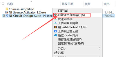 1) 下载安装包,右击 NI_Circuit_Design_Suite_14_0.exe ,点击 “以管理员身份运行”: