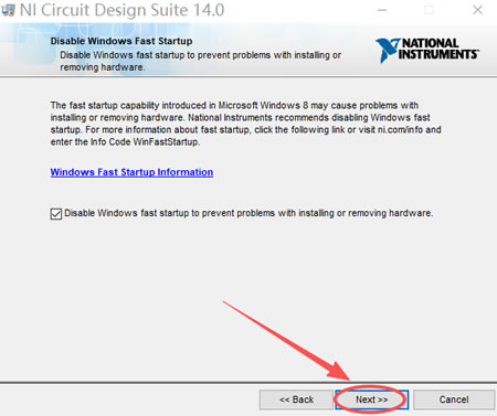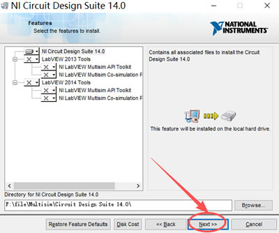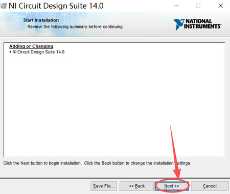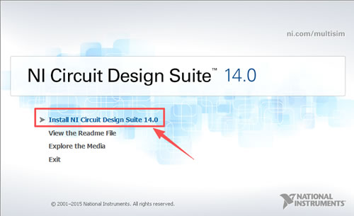 4) 进度条加载到 100% ,弹出下图所示界面,选择 “Install NI Circuit Design Suite 14.0”: