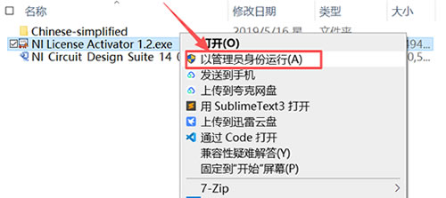 15) 再下载的安装包里,右击 NI License Activator 1.2.exe ,点击 “以管理员身份运行”: